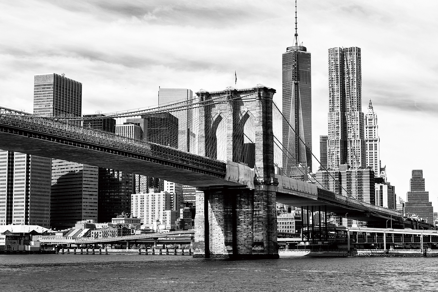 Foto Glas Art - Brooklyn Bridge Zwart-wit, 120x80cm, prachtig voor in woon en slaapkamer, inclusief ophang materiaal