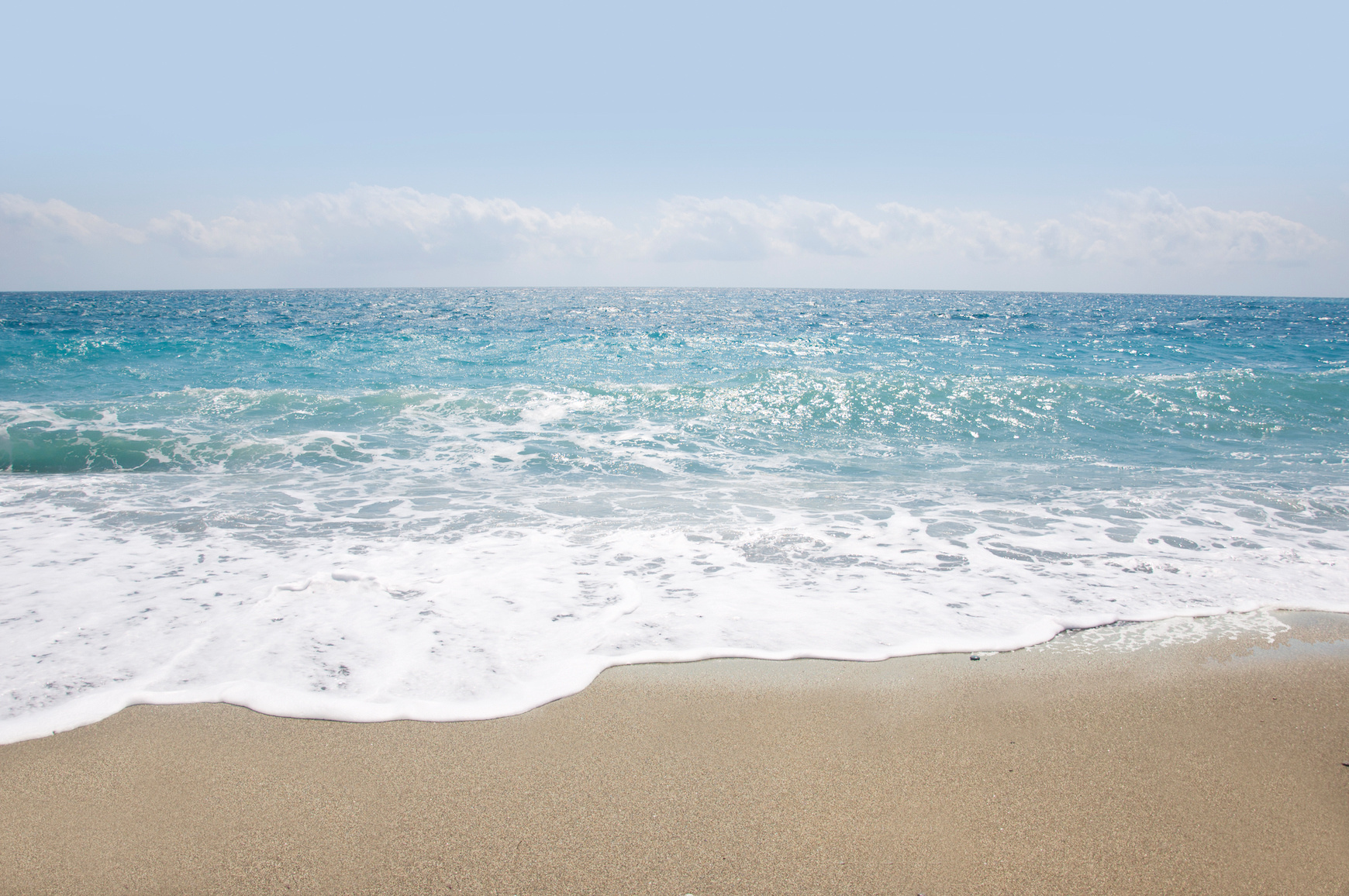 Poster - Golf van Blauwe Oceaan op zandig strand, Premium print, wanddecoratie. Koop nu 2 posters en krijg 50% korting op de laagst geprijsde poster.