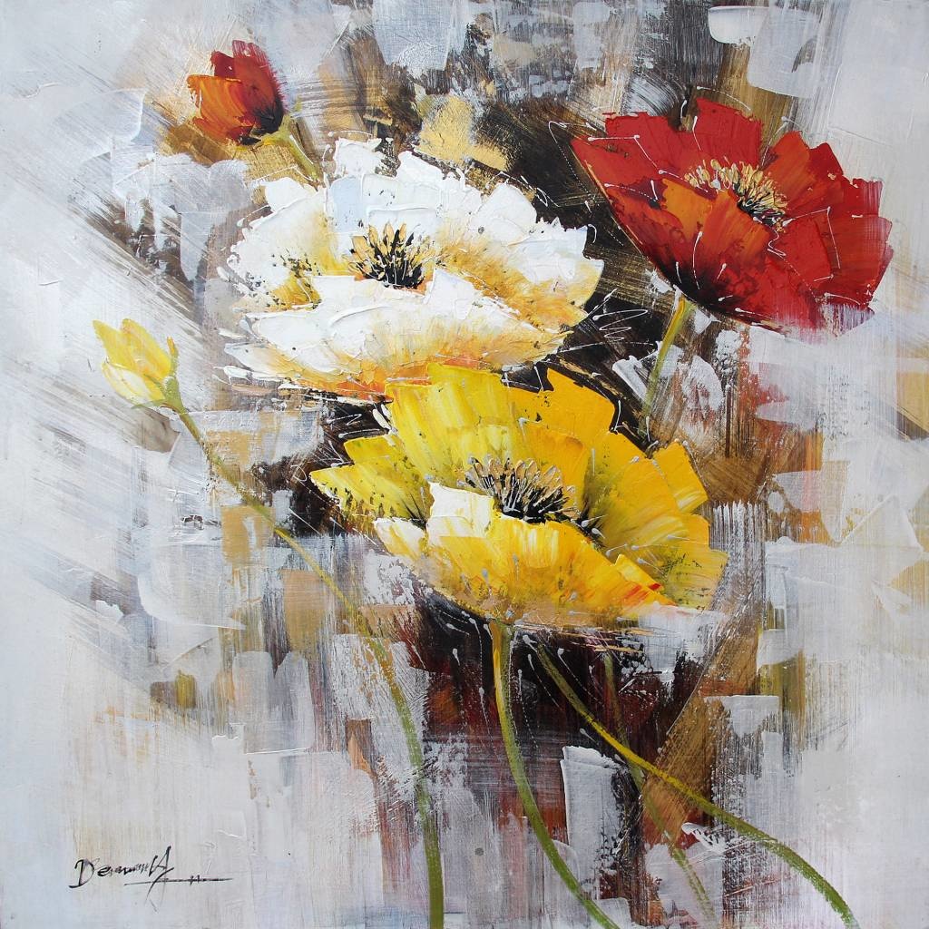 Schilderij -Handgeschilderd - Bloemen - multikleur - 100x100cm