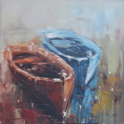 Schilderij - Handgeschilderd - Roeiboten 80x80cm